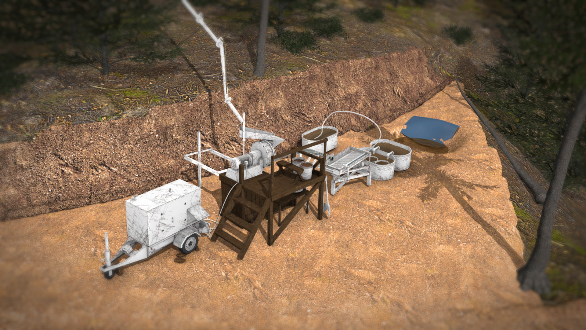To bring clarity to complex processes, we created detailed 3D models and renders of the wash plants and machinery central to each rescue. Stylised topographical maps anchored each story geographically, while archival imagery was reimagined through projection mapping and parallax animation—adding depth, atmosphere and a sense of history to every location.